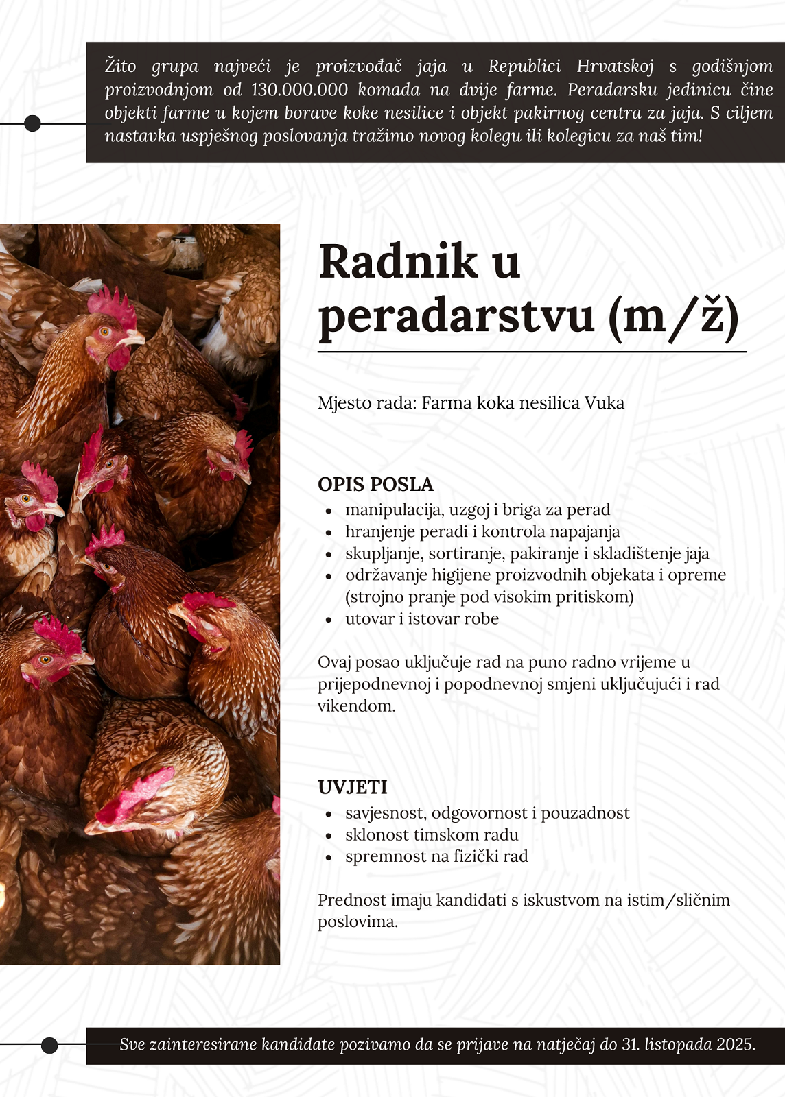 Za ostvarivanje svojih prava kontaktirajte Voditelja obrade putem E-maila: ljudski.potencijali@zito.hr.