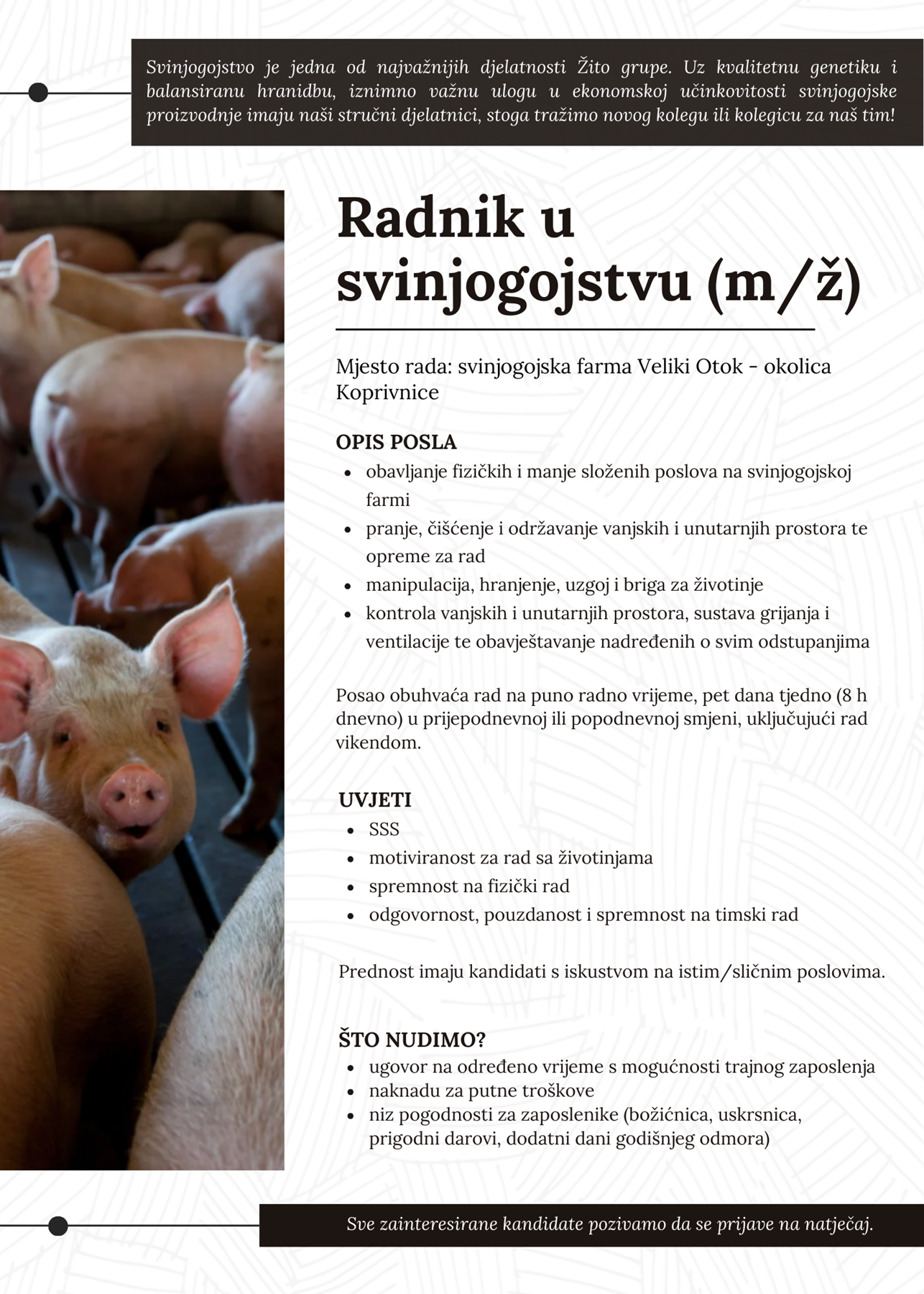 U slučaju da budete izabrani kao najbolji kandidat/kinja za određeno radno mjesto i prihvatite ponuđene uvjete, od Vas ćemo zatražiti dodatne osobne podatke u svrhe sklapanja ugovora o radu te u svrhe ispunjavanja pravnih obveza kojima kao poslodavac podliježe Žito grupa.