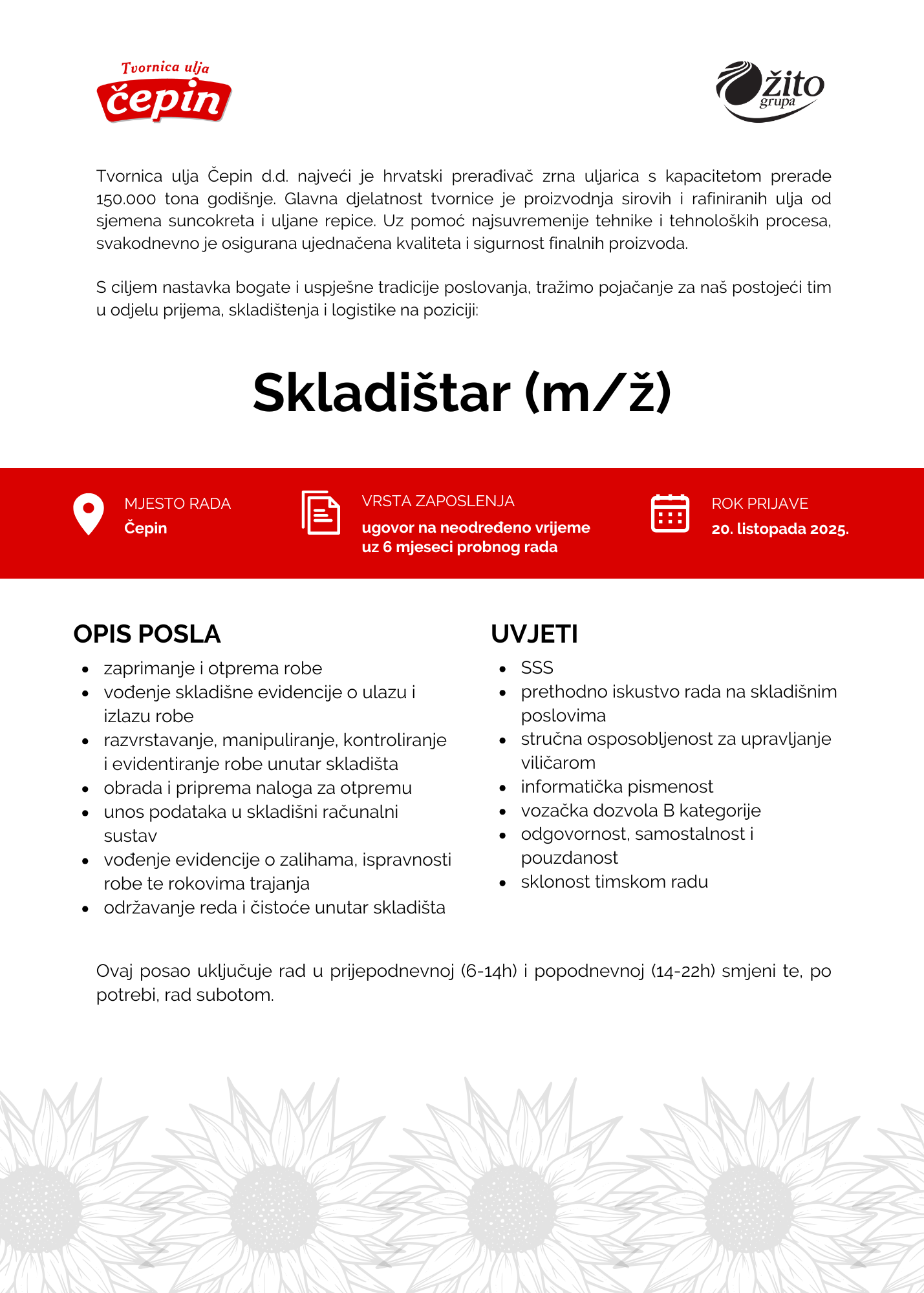 Za ostvarivanje svojih prava kontaktirajte Voditelja obrade putem E-maila: ljudski.potencijali@zito.hr.