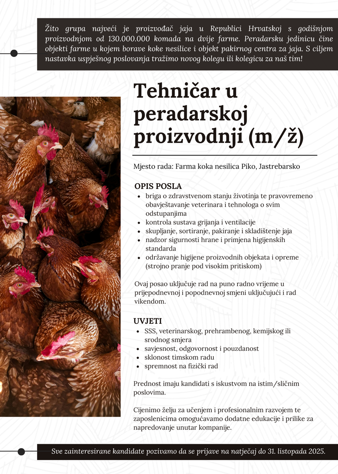Za ostvarivanje svojih prava kontaktirajte Voditelja obrade putem E-maila: ljudski.potencijali@zito.hr.