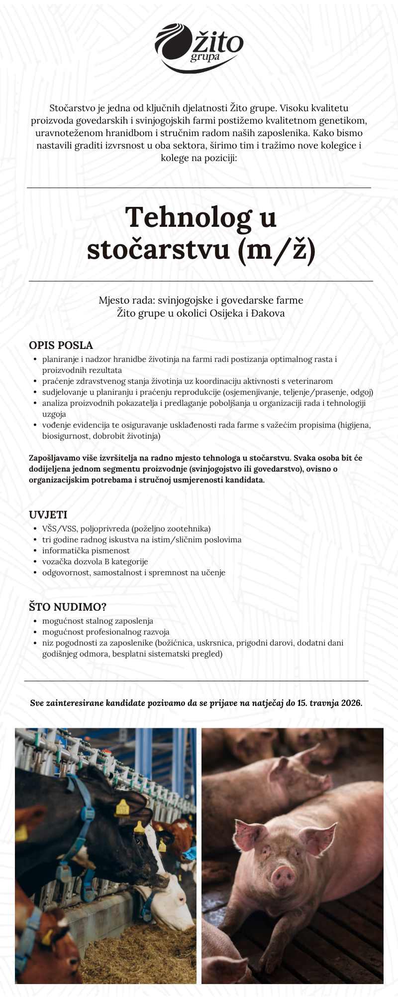 Tehnolog u stočarstvu (m/ž)